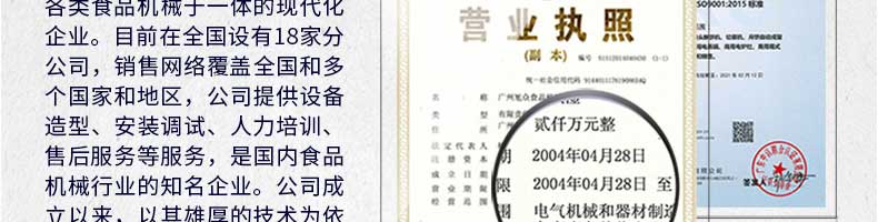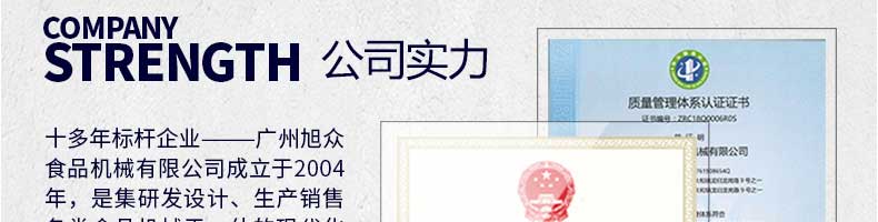 廣州旭眾食品機(jī)械有限公司是一家集科研開發(fā),生產(chǎn)設(shè)計,營銷服務(wù)為一體的現(xiàn)代化生產(chǎn)企業(yè)。現(xiàn)代化生產(chǎn)車間,精湛制造技術(shù),所產(chǎn)機(jī)械歷經(jīng)市場重重考驗,不斷贏得海內(nèi)外客戶的贊譽。