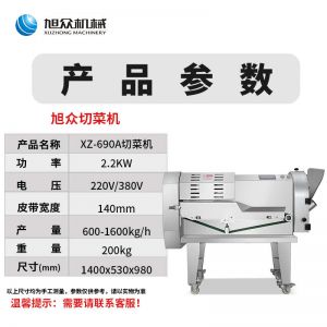 名稱XZ-690A型多功能切菜機 電源220/380V 功率2.2KW 產(chǎn)量600kg1600kg/h 尺寸1400X530X980mm 重量200kg 規(guī)格 其他皮帶寬度140mm