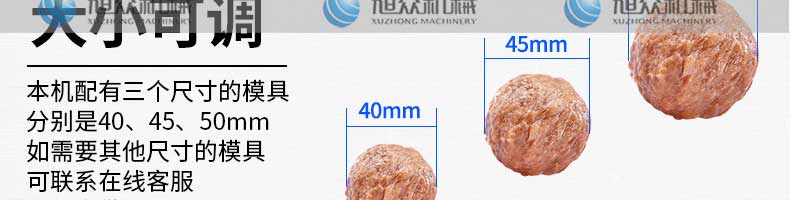XZ-605S肉丸成型機(jī),大直徑肉丸成型機(jī),主要生產(chǎn)大肉丸、獅子頭等可訂做30-60mm的規(guī)格。輕松做好美味丸子解放雙手,輕松享受創(chuàng)業(yè)財富!